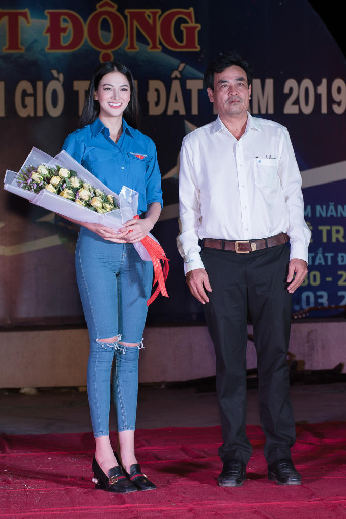 Tối 30/3, Hoa hậu Phương Khánh đã tích cực tham gia nhiều hoạt động ý nghĩa tại Lễ phát động hưởng ứng Chiến dịch Giờ Trái Đất 2019 tại tỉnh Bến Tre.