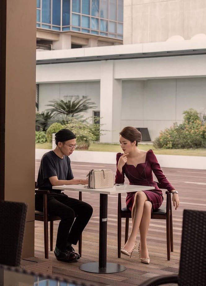 Á hậu Thuỵ Vân chăm chỉ làm việc giữa tiết trời nóng nực của Hà Nội.