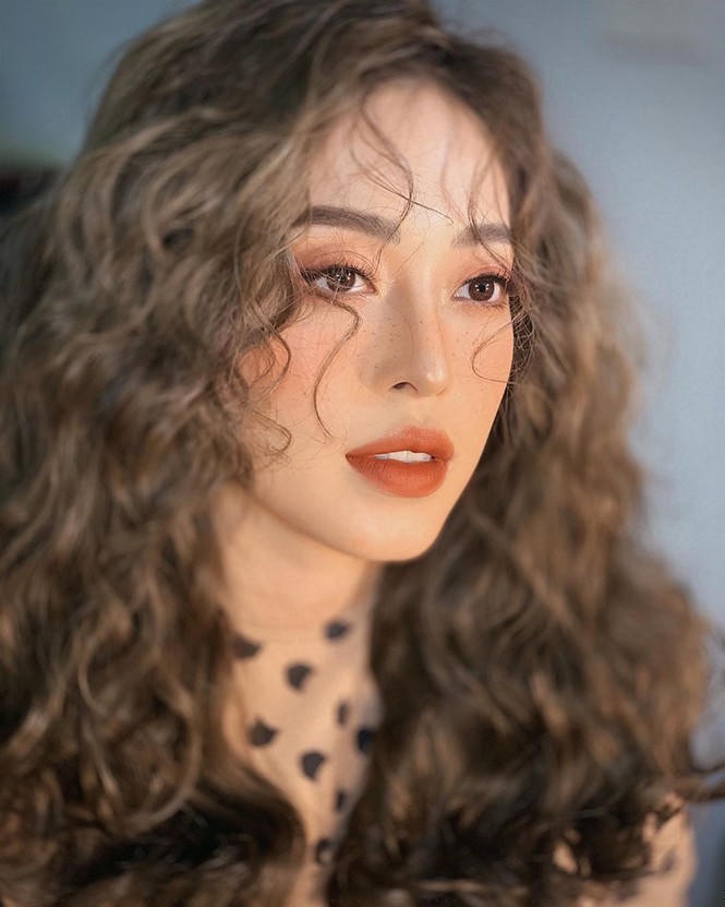 Á hậu Phương Nga khác lạ và sắc sảo với mái tóc uốn xoăn cầu kỳ.