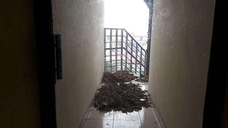 Theo bà Nhung, cửa thoát hiểm theo cầu thang bộ xuống tầng hầm của tòa nhà trước nay luôn được khóa chặt. Cầu thang trở thành chỗ phơi quần áo, đổ rác của mọi người.