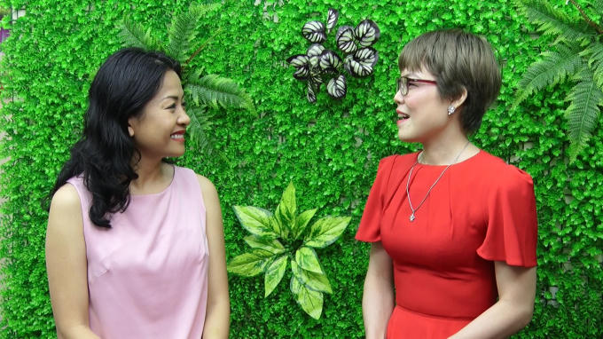 Chị Trần Uyên Phương Phó Tổng Giám đốc tập đoàn Tân Hiệp Phát giao lưu cùng Bế Thị Băng trong chương trình "Nối trọn yêu thương".