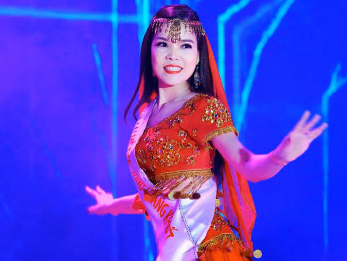 Bế Thị Băng duyên dáng biểu diễn trên một chân với giày cao gót.