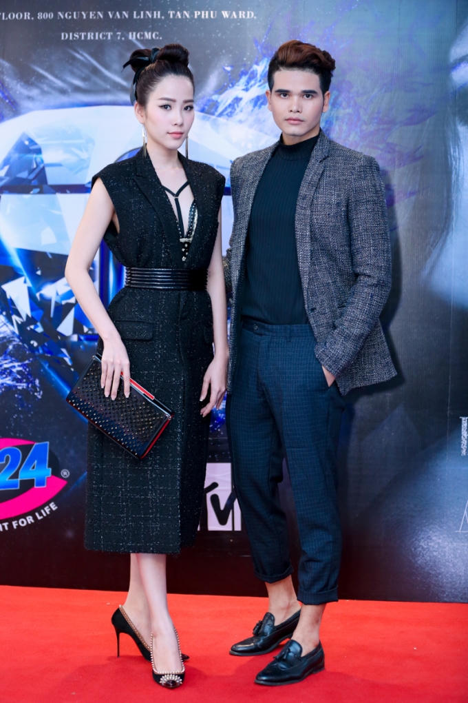 Tham dự sự kiện này, Nam Em diện một trong những mẫu thiết kế mới nhất của NTK Lý Giám Tiền. Thoạt nhìn bộ trang phục có phần kín đáo và hơi đơn điệu, nhưng phần cổ khoét sâu để lộ chiếc áo đính hạt cầu kỳ giống như một chiếc bra - top lại chính là điểm nhấn của trang phục, giúp người mặc thêm phần gợi cảm và ấn tượng.
