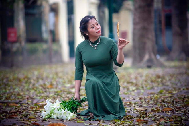 Nhiếp ảnh gia Nguyễn Hoàng Long mới đây thực hiện bộ ảnh "Nỗi nhớ tháng Tư" chia sẻ rằng: "Có một sự tương đồng và bổ trợ cho nhau giữa áo dài và hoa loa kèn.
