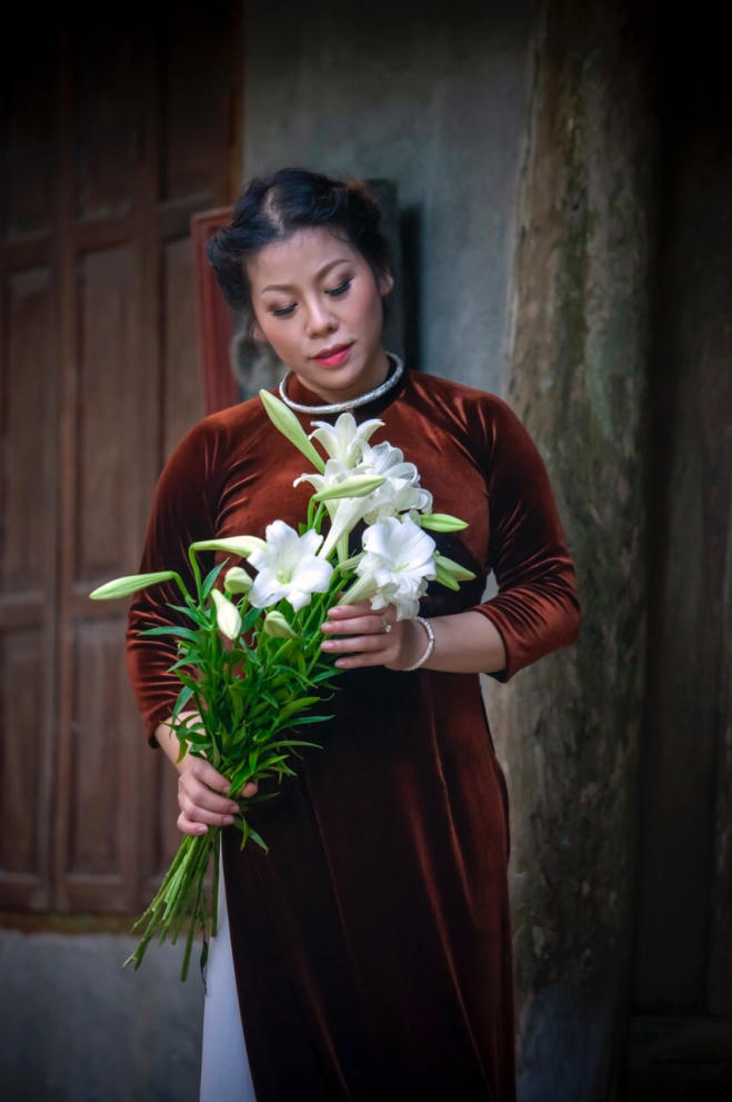 Khi kết hợp, thiếu nữ bên hoa loa kèn làm tăng thêm nét duyên dáng mềm mại, nhưng vẫn giữ được nét tinh khiết và quý phái".
