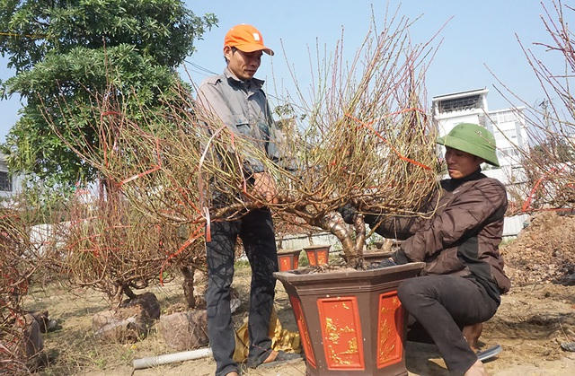 Những vườn đào cũng đang dần hình thành ở "chợ hoa Tết" lớn nhất TP Vinh trên đường Lênin. Theo anh Trần Đại Nghĩa - chủ điểm kinh doanh đào thì năm nay, giá một cây đào Nhật Tân trung bình ở mức 7-8 triệu đồng. "Đào vừa đơm nụ, thời tiết đêm rét, ngày nắng ấm như thời điểm này kéo dài thì hoa sẽ nở rộ vào đúng Tết. Lúc đó giá có thể sẽ tăng cao hơn", anh Nghĩa cho hay.