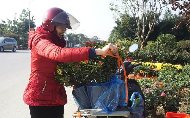 Chị Nguyễn Thị Hoa (phường Bến Thủy, TP Vinh) tranh thủ đi mua hoa trồng ở nghĩa trang của dòng họ. "Tết đến, Xuân về, ngoài quét tước, sơn sửa "nhà" cho các cụ, tôi mua thêm 3 chậu hoa bông trang trồng để cho thêm không khí Tết. Đầu mùa nên hoa khá rẻ, 3 chậu bông trang và 4 chậu hoa đồng tiền hết 350 nghìn đồng. Trước mắt mua từng đó đã, gần Tết tôi lại đi sắm thêm hoa đào, cúc...".