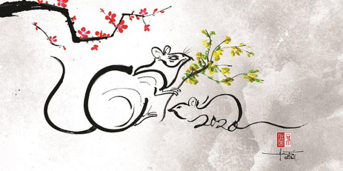 Họa tự về chuột mừng năm Canh Tý