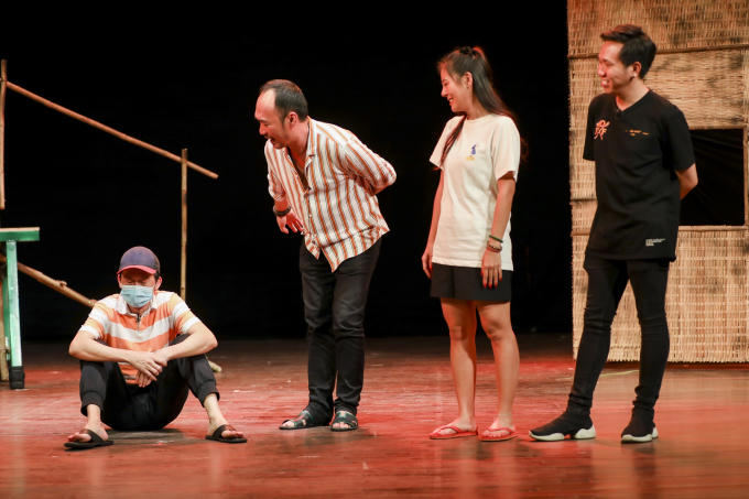 Danh hài Hoài Linh diễn tập cùng các đồng nghiệp.