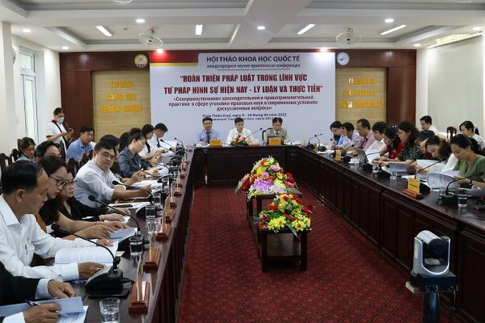 Hội thảo với chủ đề “Hoàn thiện pháp luật trong lĩnh vực tư pháp hình sự hiện nay – Lý luận và thực tiễn” đã thu hút các giáo sư, chuyên gia tham gia, các vấn đề nghiên cứu đa dạng bao gồm: Các vấn đề cấp thiết hiện nay của pháp luật hình sự và tố tụng hình sự; Xu hướng hoàn thiện pháp luật tố tụng hình sự, điều tra hình sự và giám định tư pháp; Hợp tác quốc tế như một công cụ hữu hiệu để chống tội phạm; Triển vọng cho sự phát triển của ngành tố tụng hình sự, tội phạm học, điều tra tội phạm, giám định tư pháp và hoạt động trinh sát.