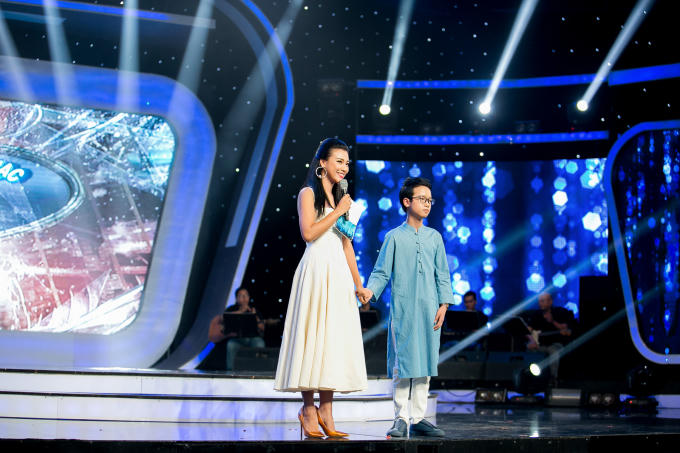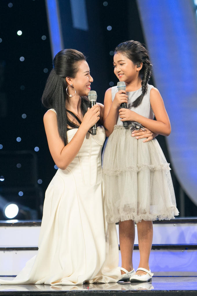 Không chỉ đơn thuần kết nối các tiết mục trong chương trình, Hoàng Oanh còn tương tác với huấn luyện viên và khán giả, tạo nên những màn đối đáp vui nhộn, mang đến không khí sôi động tươi trẻ cho Thần tượng âm nhạc nhí 2017.
