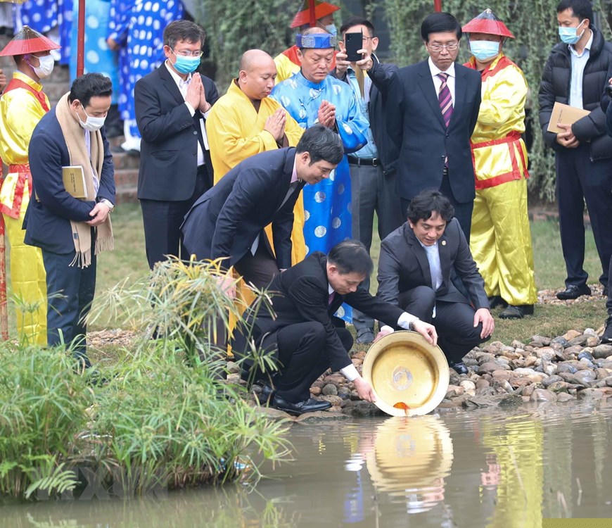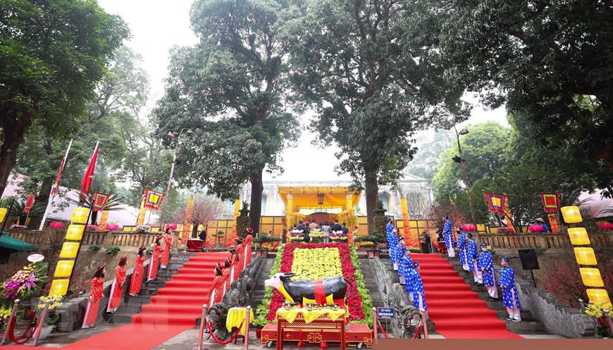 Làm lễ tại điện Kính Thiên. (Ảnh: Thanh Tùng/TTXVN)