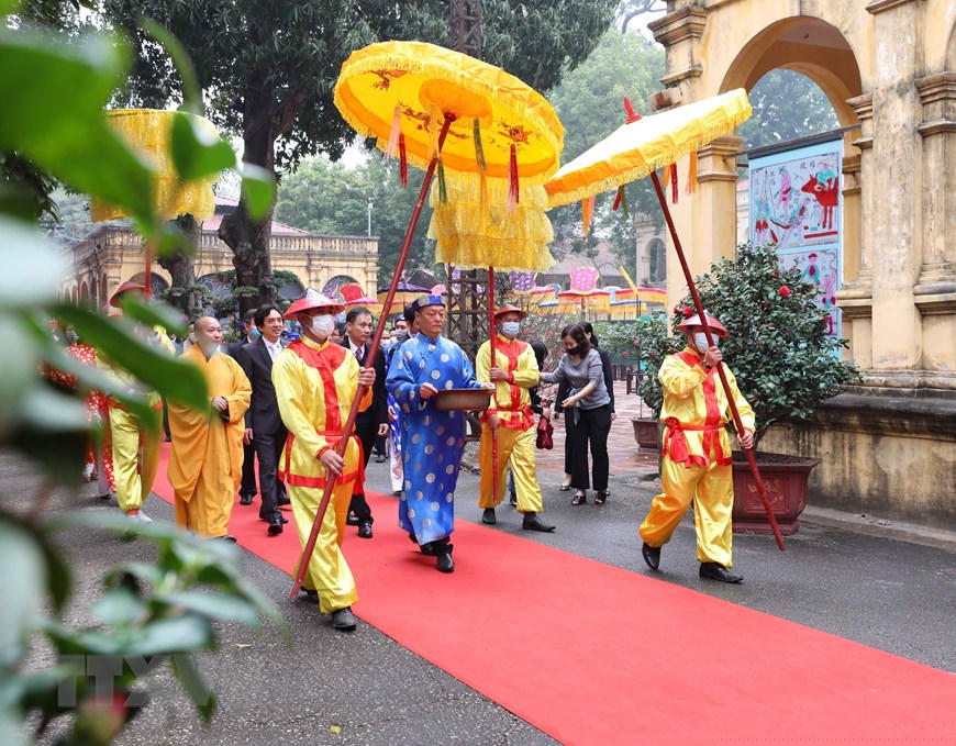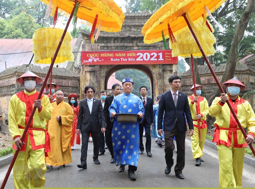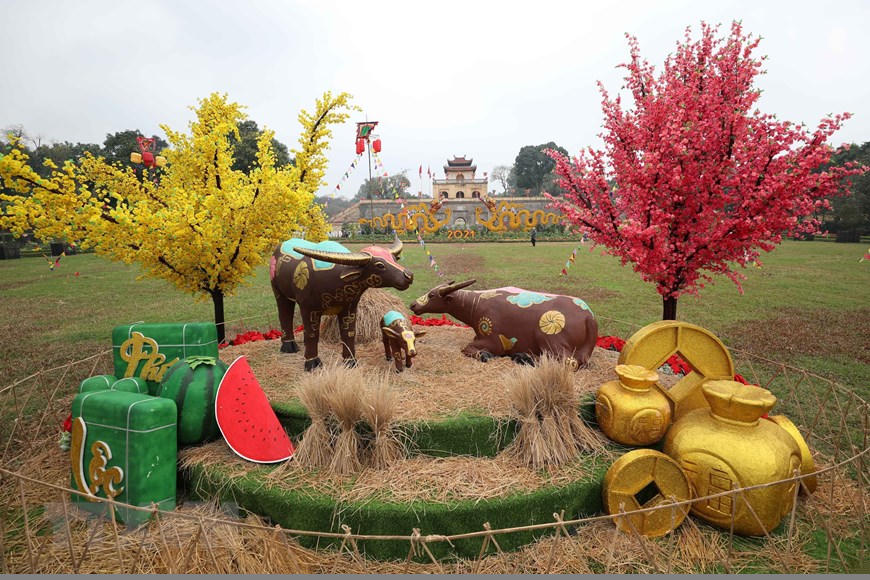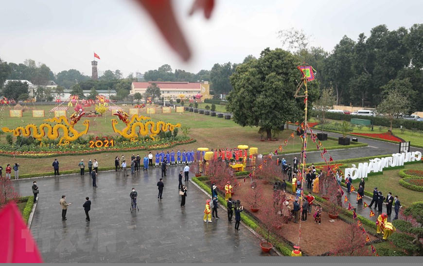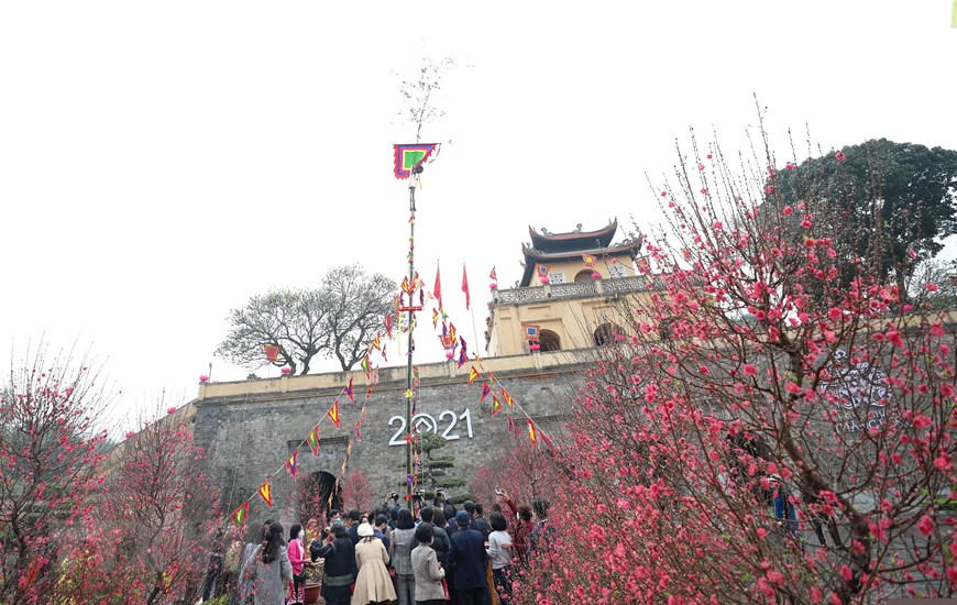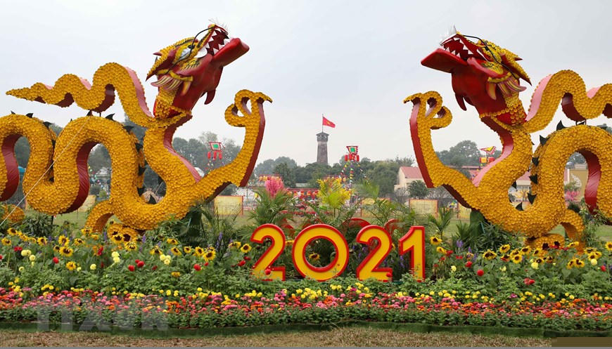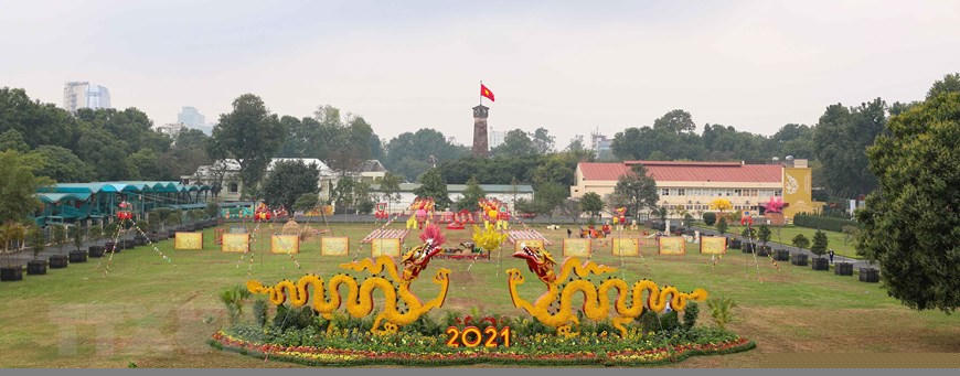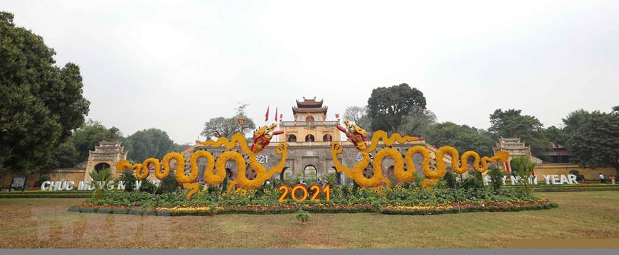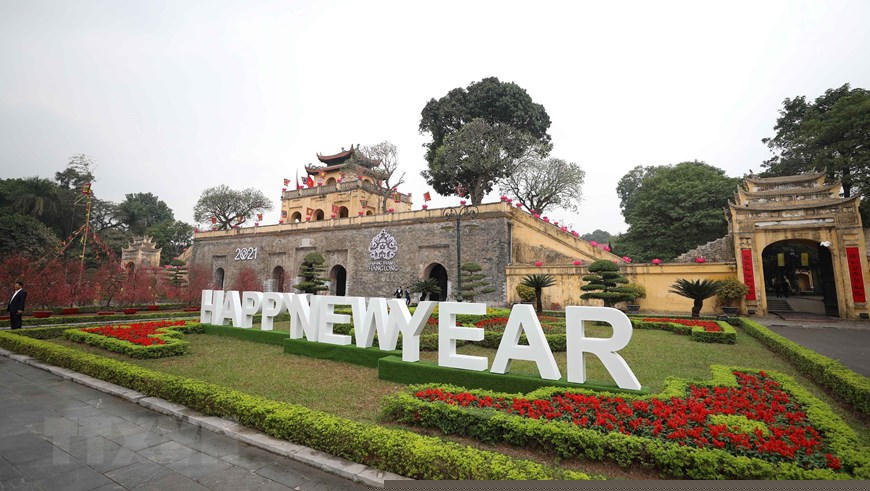 Đón Xuân mới Tân Sửu 2021, Hoàng Thành Thăng Long được trang trí rực rỡ. (Ảnh: Thanh Tùng/TTXVN)