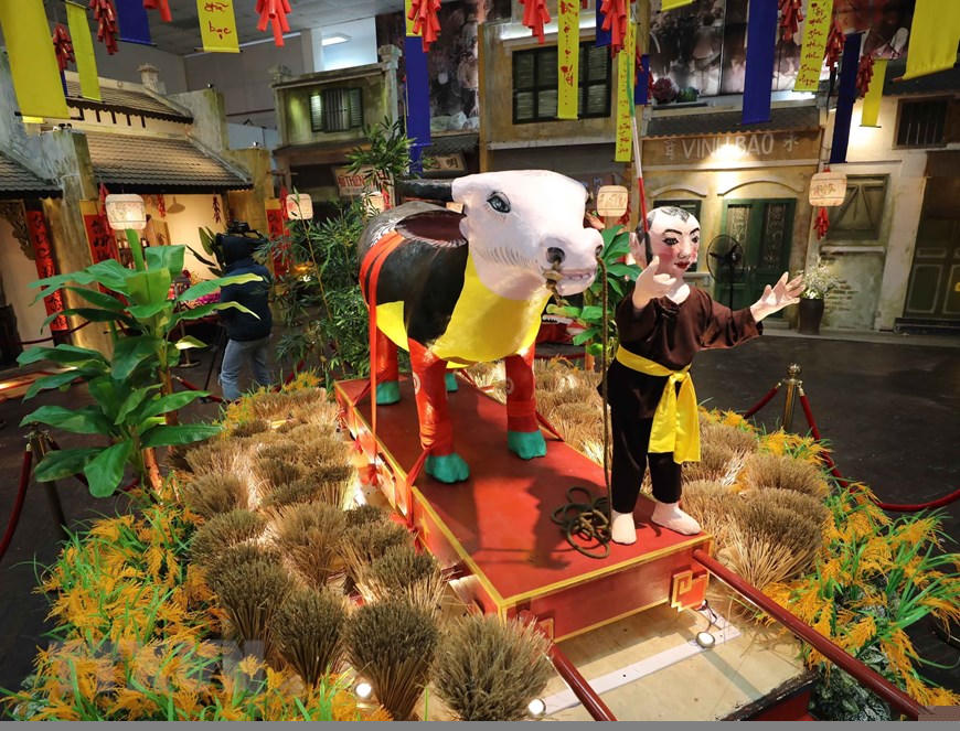 Không gian trưng bày với chủ đề Tân Sửu nghênh Xuân. (Ảnh: Thanh Tùng/TTXVN)