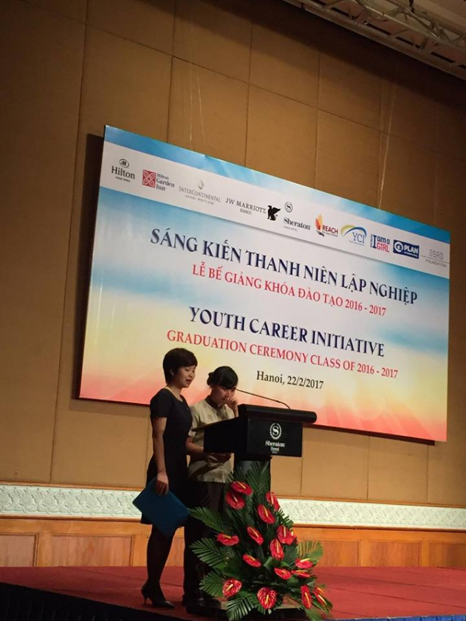 Ngày 22/2, tại khách sạn Sheraton (Hà Nội) đã diễn ra Lễ bế giảng và trao chứng chỉ nghề cho 39 học viên có hoàn cảnh khó khăn hoàn thành xuất sắc chương trình “Sáng kiến thanh niên lập nghiệp” 2016 (YCI).