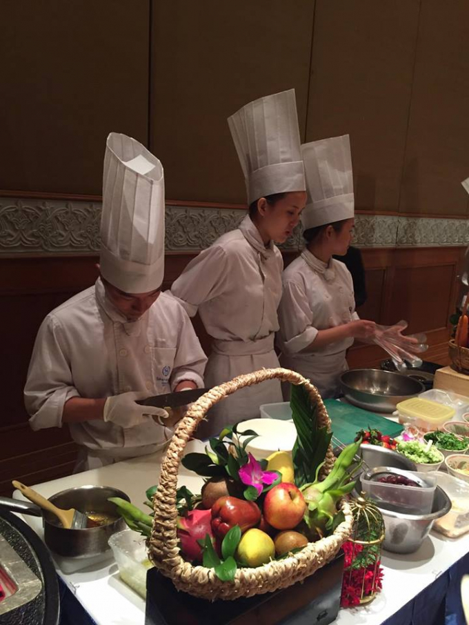| Học viên YCI trổ tài biểu diễn ẩm thực ngay tại phòng họp Sông Đà thuộc khách sạn Sheraton Hà Nội. |