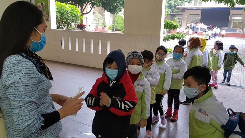 Khi học sinh đến trường, không cho phụ huynh học sinh, người không có nhiệm vụ vào trong trường. Nhà trường bố trí người đón và giao nhận trẻ mầm non và học sinh tiểu học tại cổng trường. Thực hiện việc đo thân nhiệt cho học sinh, giáo viên, cán bộ quản lý và nhân viên trước khi vào trường và lớp học.