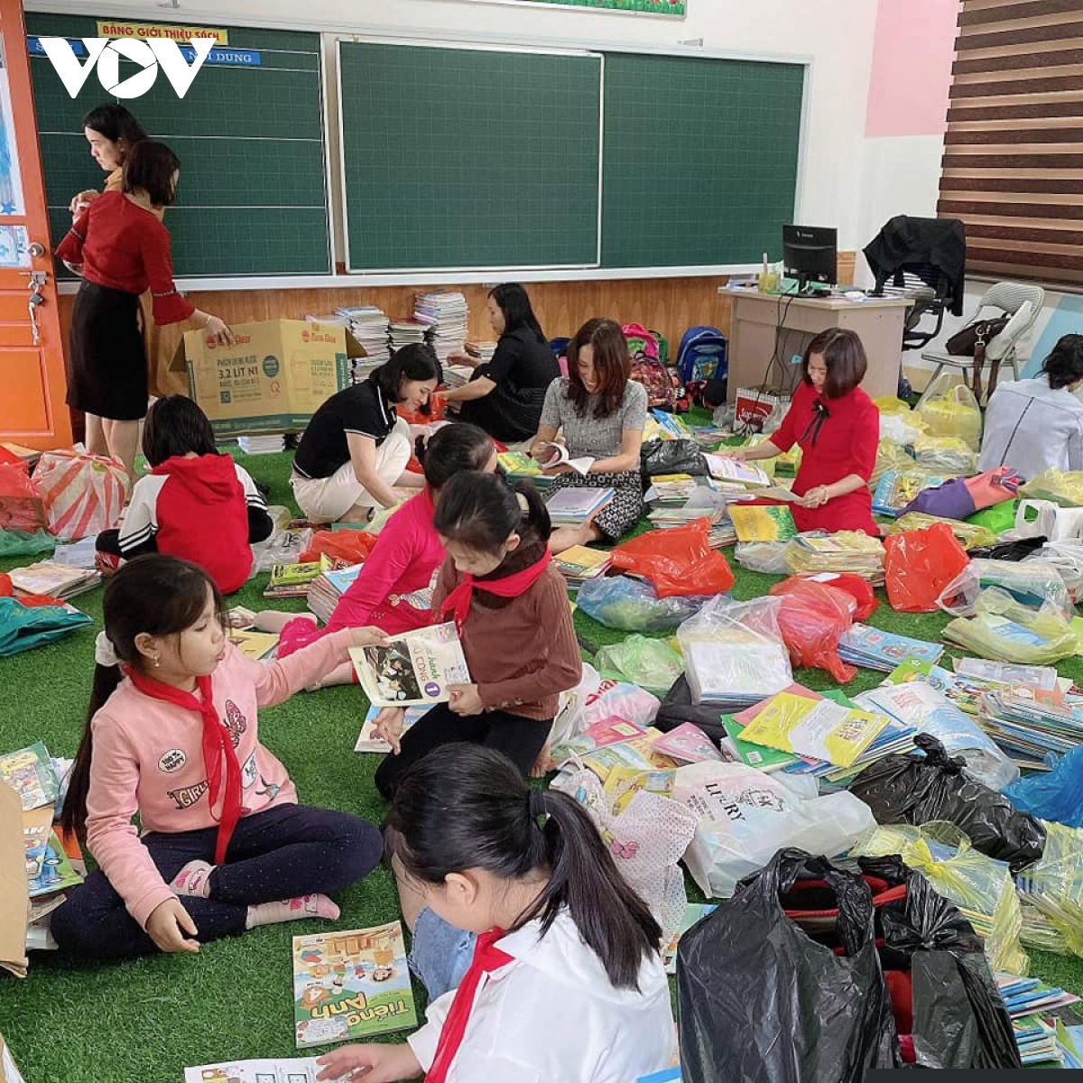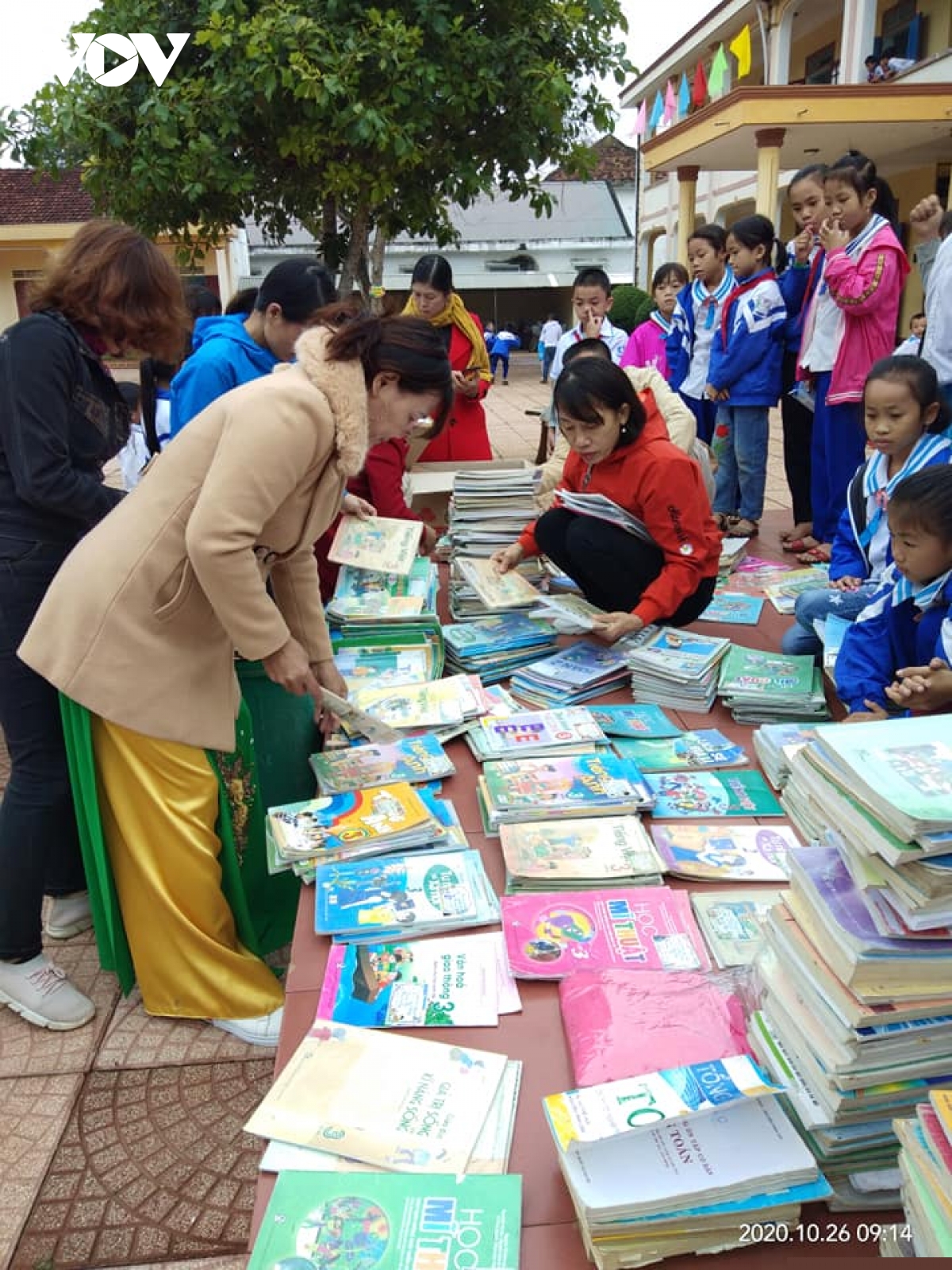 Những ngày này, cùng với các hoạt động chia sẻ quần áo, lương thực... nhiều trường học tại Nghệ An đã và đang phát động phong trào quyên tặng sách giáo khoa, vở, đồ dùng học tập cho học sinh các địa phương tại miền Trung chịu ảnh hưởng nặng nề bởi cơn lũ vừa qua.