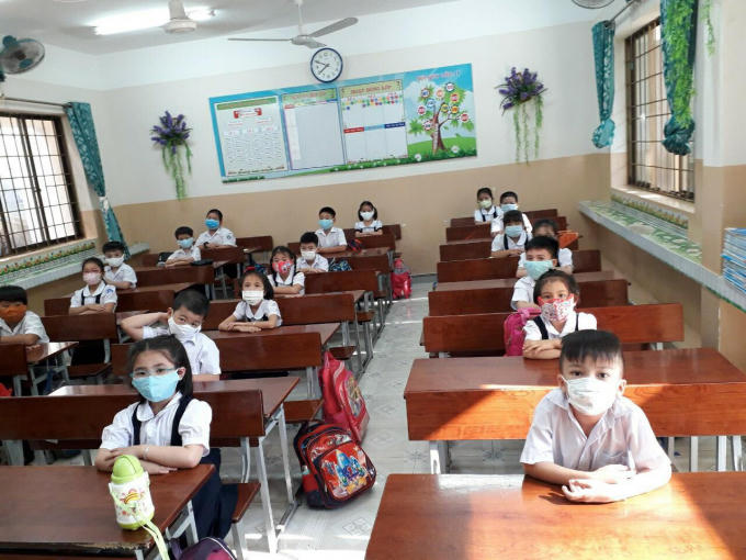 Đối với bậc tiểu học, hiện các nhà trường vẫn tạm ngưng tổ chức bán trú và các hoạt động ngoại khóa. Thực hiện chỉ đạo của toàn ngành, các trường tiểu học đều thực hiện phân chia lớp, bảo đảm mỗi lớp chỉ khoảng 18-20 học sinh, đồng thời sắp xếp thời khóa biểu hợp lý để mỗi buổi học chỉ có 50% học sinh tới trường. Sau giờ học, GV các lớp cho học sinh xếp hàng, đưa các em ra tận cổng trường trao tận tay phụ huynh. Nhà trường cũng đã kẻ vạch sơn ở cổng trường để bảo đảm khoảng cách an toàn khi phụ huynh đưa đón con em.