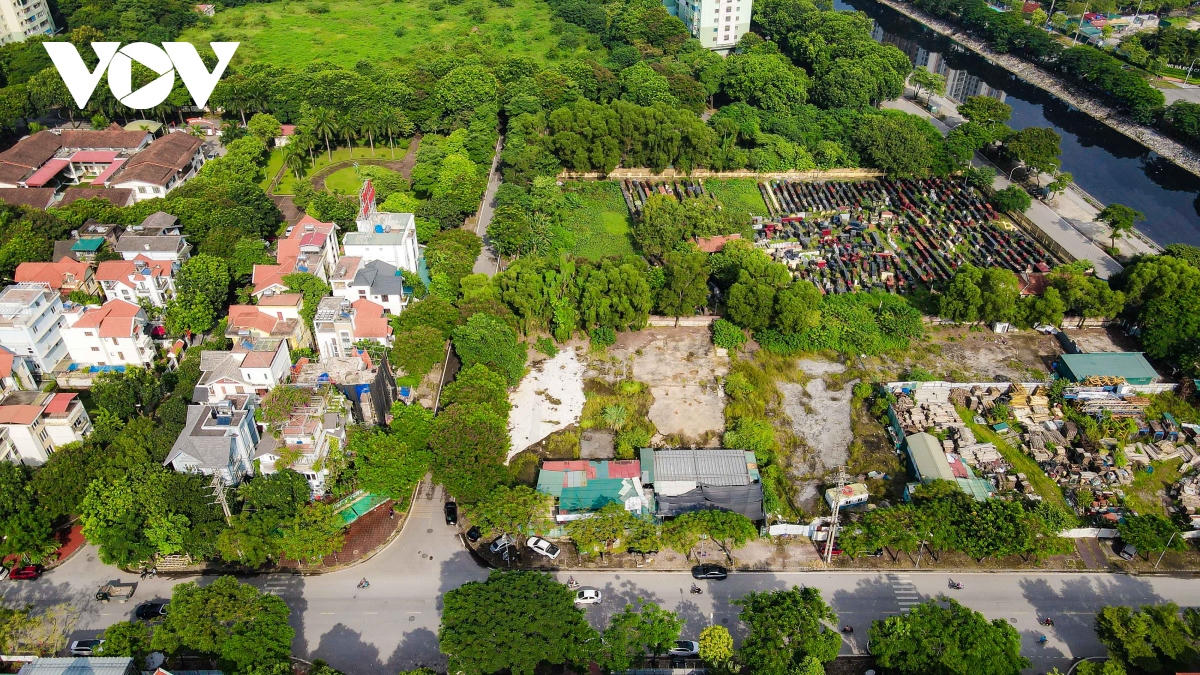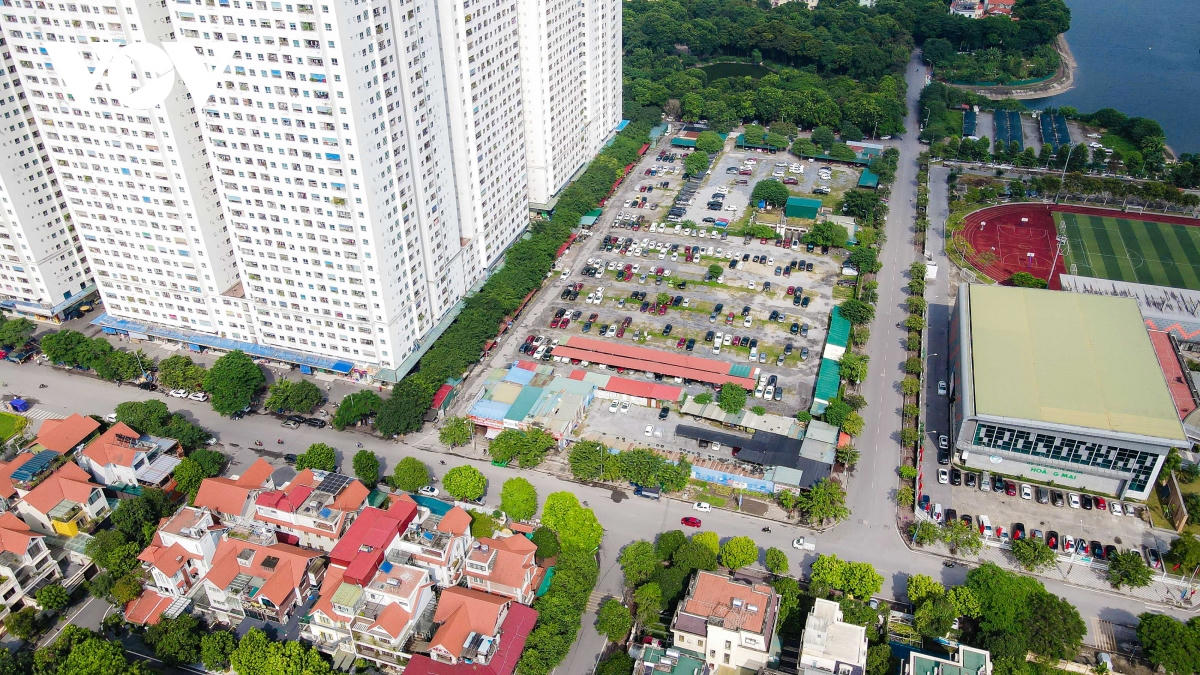 2 ô đất F5/TH3, F5/NT5 có diện tích 0,49ha được quy hoạch để xây dựng trường mầm non và trường trung học cơ sở nằm cạnh Trung tâm Văn hóa, Thông tin và Thể thao quận Hoàng Mai hiện được bỏ hoang làm bãi trông giữ xe . Ảnh VOV