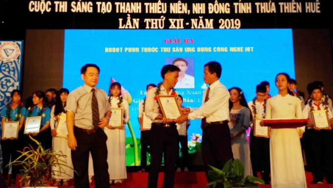Trương Xuân Cường nhận giải thưởng Cuộc thi sáng tạo thanh thiếu niên, nhi đồng tỉnh Thừa Thiên - Huế năm 2019.