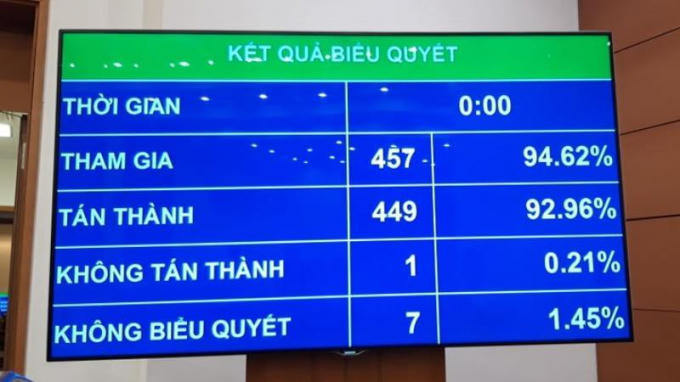 92,96% đại biểu Quốc hội ủng hộ.