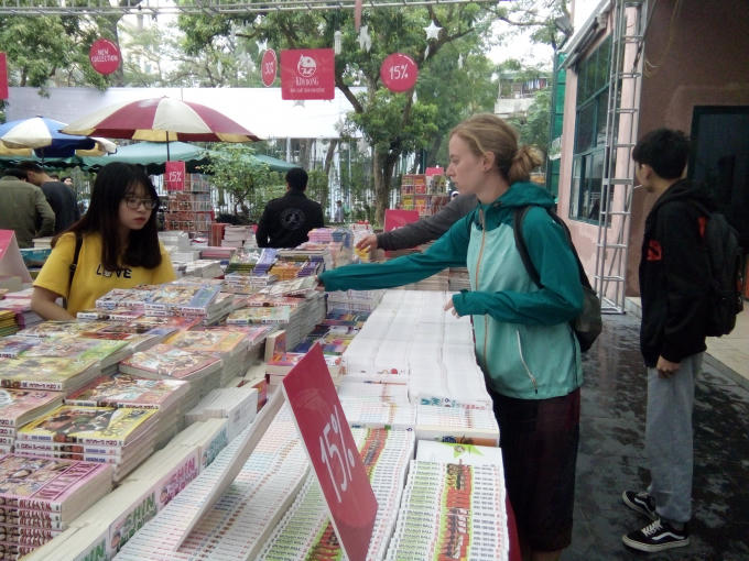 Bất chấp thời tiết mưa phùn của Hà Nội nhưng hội sách vẫn thu hút được lượng lớn du khách cũng như những tín đồ đam mê sách.