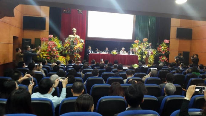Giáo sư Hoàng Chương - Tổng giám đốc Trung tâm Nghiên cứu, Bảo tồn và Phát huy văn hóa, , cùng đại diện nguyên bộ trưởng, thứ trưởng đã về hưu.