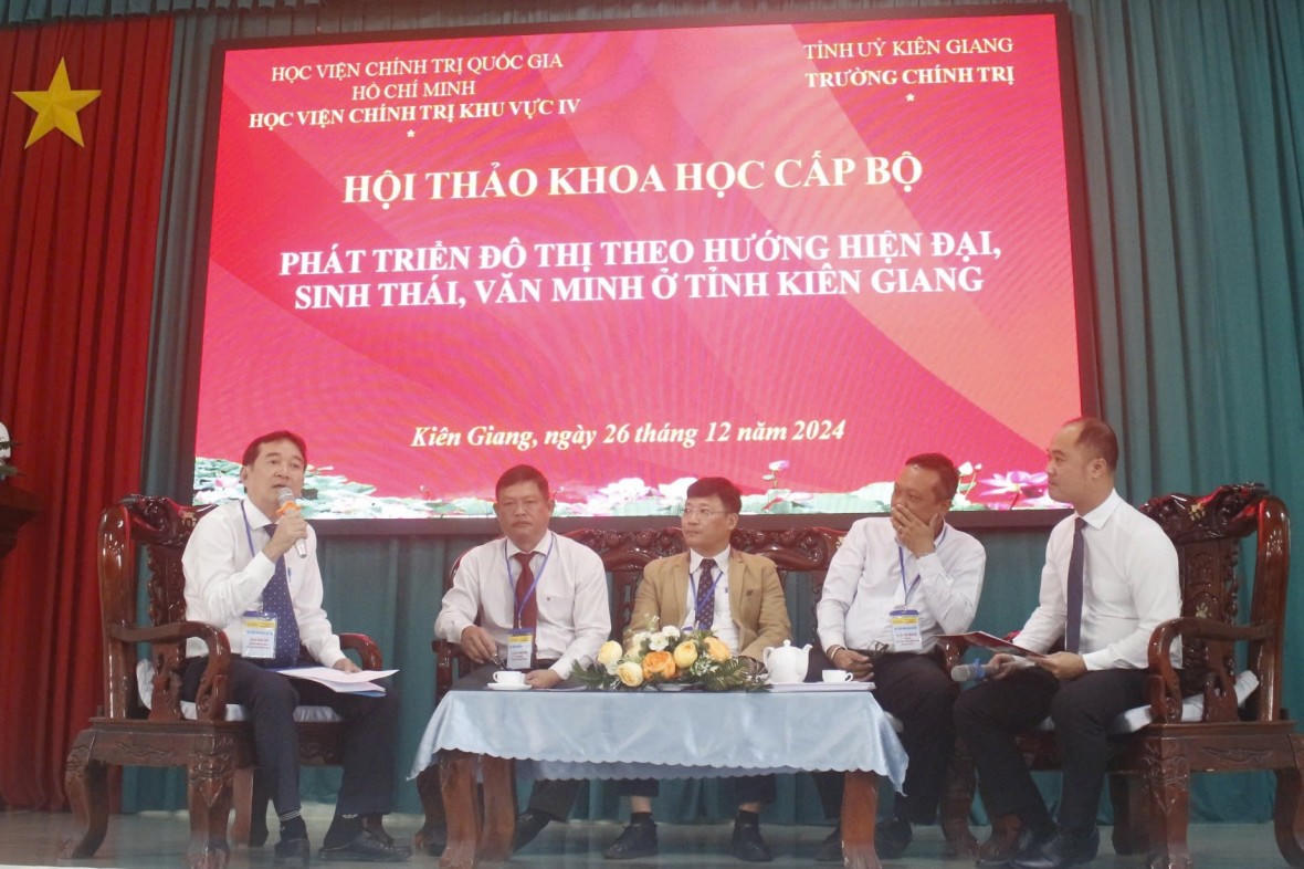 Chiều ngày 26/12, tại TP Rạch Giá, Trường Chính trị tỉnh Kiên Giang đã phối hợp với Học viện Chính trị khu vực IV (Học viện Chính trị Quốc gia Hồ Chí Minh) tổ chức hội thảo khoa học cấp Bộ với chủ đề “Phát triển đô thị theo hướng hiện đại, sinh thái, văn minh ở tỉnh Kiên Giang.” Hội thảo có sự tham dự của nhiều nhà quản lý, nhà khoa học, chuyên gia, cùng đại diện các Trường Chính trị khu vực Đồng bằng sông Cửu Long và các sở, ngành liên quan của tỉnh Kiên Giang.