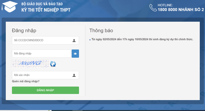 | Thí sinh đăng ký dự thi tốt nghiệp THPT năm 2024 theo hình thức trực tuyến tại website http://thisinh.thitotnghiepthpt.edu.vn |