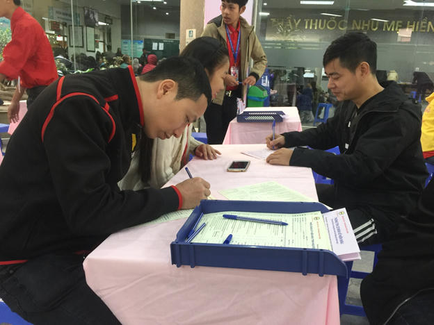 Dù hôm nay mới là ngày đầu tiên của chương trình hiến máu, nhưng từ rất sớm đã có rất đông những người đến hiến máu. Đến từ sớm và là người hiến máu đầu tiên của Xuân Hồng năm nay, bạn Nguyễn Văn Nông-sinh viên năm nhất Đại Học Giao Thông vận tải cho hay “Đây là lần thứ 2 em tham gia hiến máu tình nguyện, biết hôm nay lễ Hội Xuân hồng được tổ chức tại Viện em đã đến rất sớm và cảm thấy rất vui khi mình trở thành người đầu tiên hiếu máu trong hôm nay”.