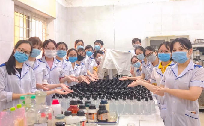 Ngoài ra sinh viên Đại học Y khoa Vinh còn chế dung dịch sát khuẩn để hỗ trợ các điểm cách ly tập trung.