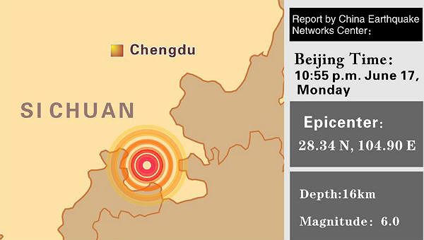 Theo Trung tâm Mạng lưới Động đất Trung Quốc, tâm chấn của động đất ở độ sâu 16 km, ở tọa độ 28,34 độ vĩ bắc và 104,90 độ kinh đông.