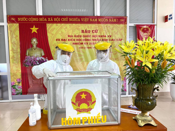 Tất cả người bệnh, người nhà người bệnh, cán bộ y tế, người lao động đều được đi bầu cử và đã được cán bộ y tế chuẩn bị và cung cấp trang phục bảo hộ từ trước đó. Đảm bảo mỗi người khi đi bầu cử đều mặc quần áo bảo hộ, đeo khẩu trang, kính chắn giọt bắn và đảm bảo đứng giãn cách 3m.