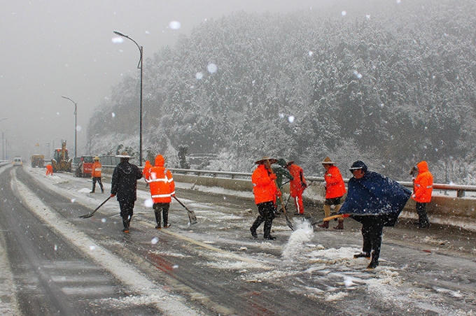 Nhiệt độ khu vực phía nam Trung Quốc đã hạ xuống mức thấp nhất trong vòng 40 năm qua. Chính quyền địa phương đã gửi quần áo ấm, lương thực phẩm lên các khu vực bị ảnh hưởng do thời tiết xấu.
