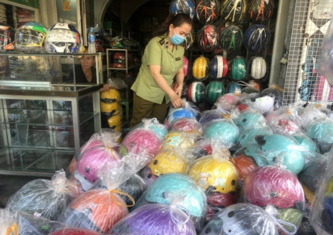 Cụ thể, tại địa điểm 93 Hải Thượng Lãn Ông đang kinh doanh lô hàng 2.102 chiếc mũ bảo hiểm gắn nhãn hiệu Nón Sơn, Điểm 105 Hải Thượng Lãn Ông kinh doanh 470 chiếc mũ bảo hiểm và 101 Hải Thượng Lãn Ông kinh doanh 140 chiếc mũ bảo hiểm gắn nhãn hiệu Nón Sơn. Toàn bộ số hàng trên có tổng trị giá 87.460.000 đồng.