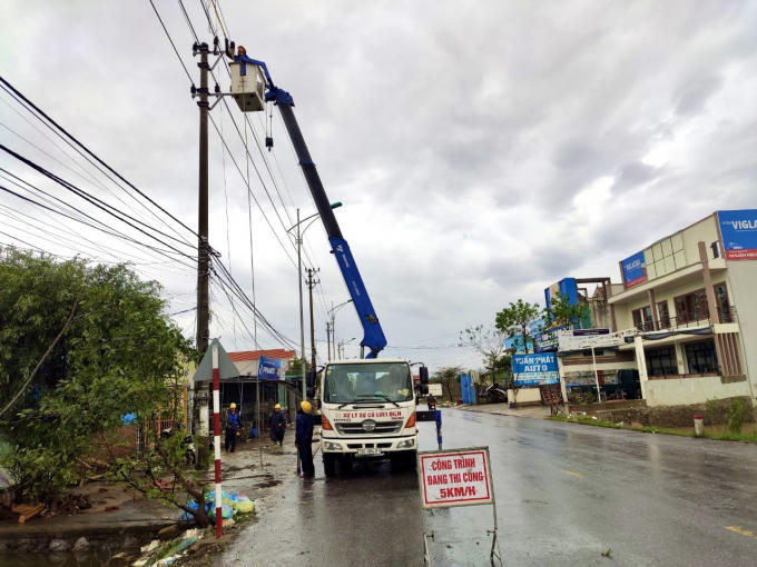 Tại Quảng Bình, bão đã khiến 10.269 khách hàng ở 10 phường/xã mất điện; tại Quảng Trị có 128.723 khách hàng ở 63 xã/phường mất điện; tỉnh Thừa Thiên - Huế có 191.164 khách hàng;