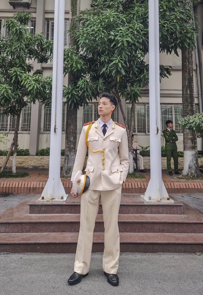 Chàng Công an điển trai luôn được mọi người quý mến.