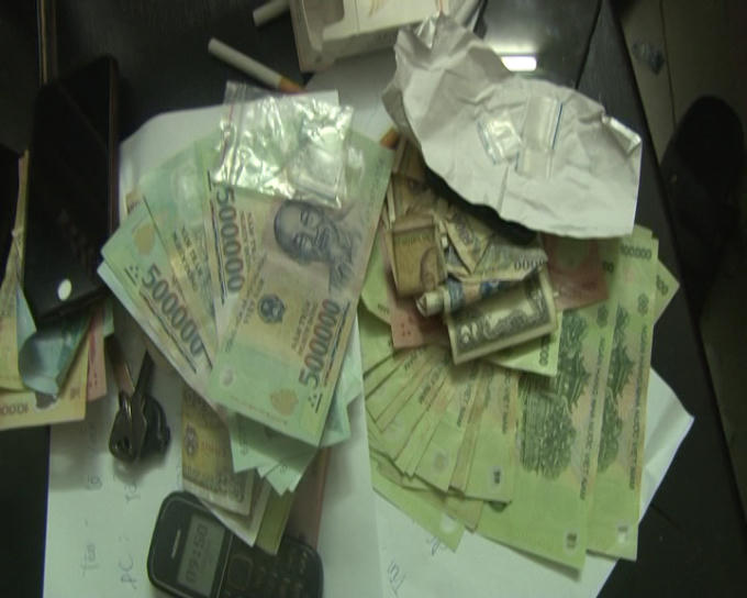 Lực lượng Công an thu giữ 0.5599 gam ma túy và nhiều gói ma túy đã qua sử dụng. Bước đầu các đối tượng khai nhận loại ma túy sử dụng là thuốc lắc và “Khay” hay còn gọi là Ketamin.