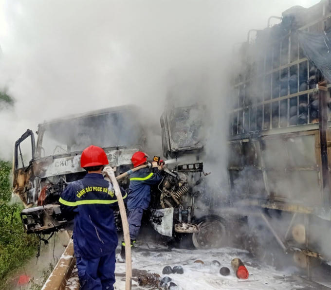 Cú va chạm mạnh khiến cho đầu hai xe bốc cháy dữ dội, hư hỏng nặng. Nhận được tin báo, lực lượng Cảnh sát Phòng cháy chữa cháy và Cứu hộ cứu nạn, Cảnh sát giao thông Công an tỉnh Thừa Thiên – Huế có mặt để dập tắt ngọn lửa, đưa tài xế mắc kẹt trong cabin xe 17H-000.77 ra ngoài.