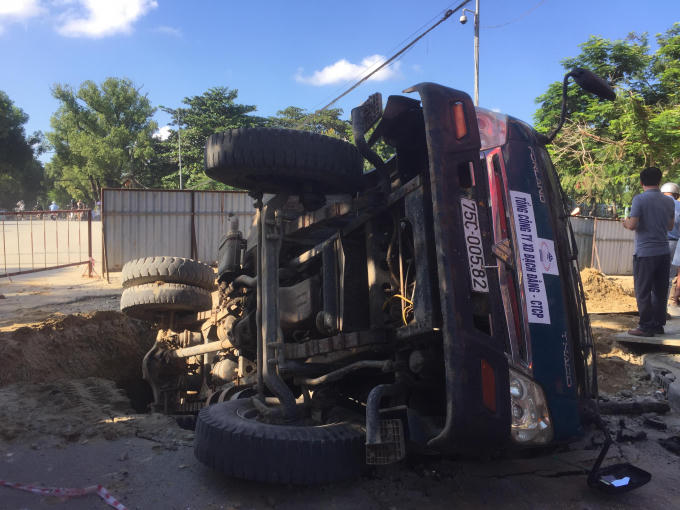 Khoảng 15h chiều 21/9, một xe tải mang BKS 75C - 005.82 có gắn bảng thông báo của Tổng Công ty Xây dựng Bạch Đằng đang chở đất thi công dự án cải thiện môi trường nước, khi đang chở đất thi công qua đoạn đường giao nhau giữa Nguyễn Trường Tộ và Phan Chu Trinh, TP Huế thì bất ngờ bị "sạt lún" xuống đường ống thoát nước đang làm, khiến 2 người bị thương.