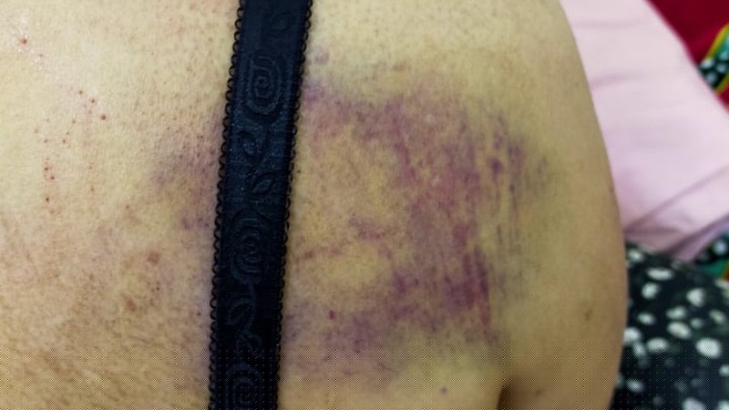 Vết thương trên vai chị Hường sau khi bị tấn công. (Ảnh nạn nhân cung cấp)