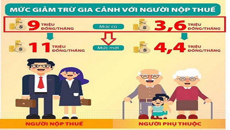 - Mức giảm trừ đối với mỗi người phụ thuộc là 4,4 triệu đồng/tháng.