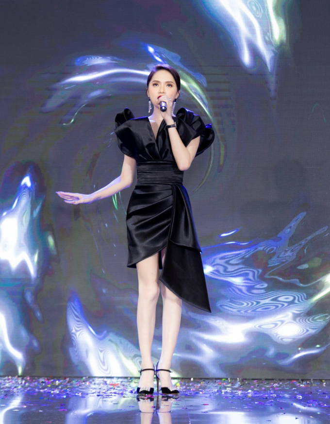 Trong khi đó, Hoa hậu Hương Giang cũng gây chú ý tại sự kiện với đầm đen thiết kế cách điệu, khoe dáng vóc gợi cảm. Người đẹp trình diễn lại liên khúc từng làm nên tên tuổi của mình như: “Tặng anh cho cô ấy”, “Em hơi mệt với bạn thân anh”…