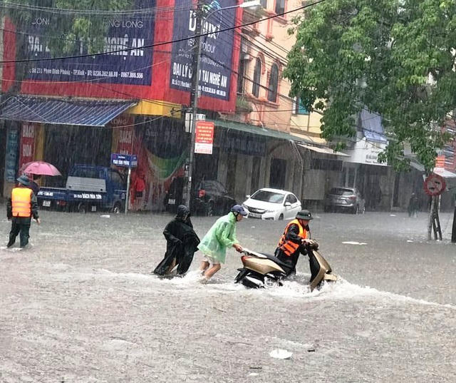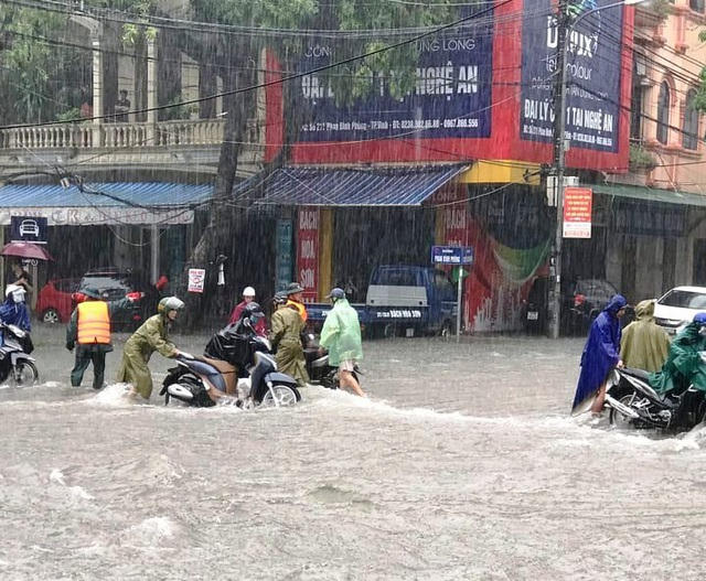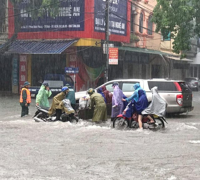 Công an TP Vinh tổ chức lực lượng cảnh sát giao thông chốt chặn tại các ngã ba, ngã tư, điều tiết, hướng dẫn người dân tránh đi vào vùng ngập nước sâu. Trong khi đó, Đội CSTT và cơ động CA thành phố cũng ra đường, tổ chức các đợt cứu hộ cho người và phương tiện tham gia giao thông.