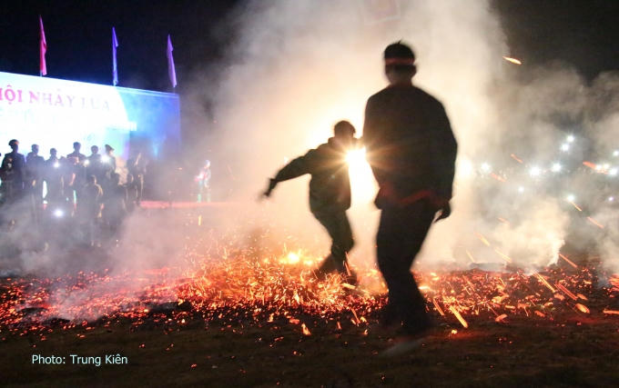 Nhảy lửa là một lễ nghi thần bí của người dân tộc Pà Thẻn để mừng lúa mới, cầu mong sức khỏe cho dân làng và mùa màng bội thu. Đống lửa lớn là lời nguyện cầu tới thần linh phù hộ cho năm mới an khang, thịnh vượng và xua đuổi tà ma, bệnh tật.