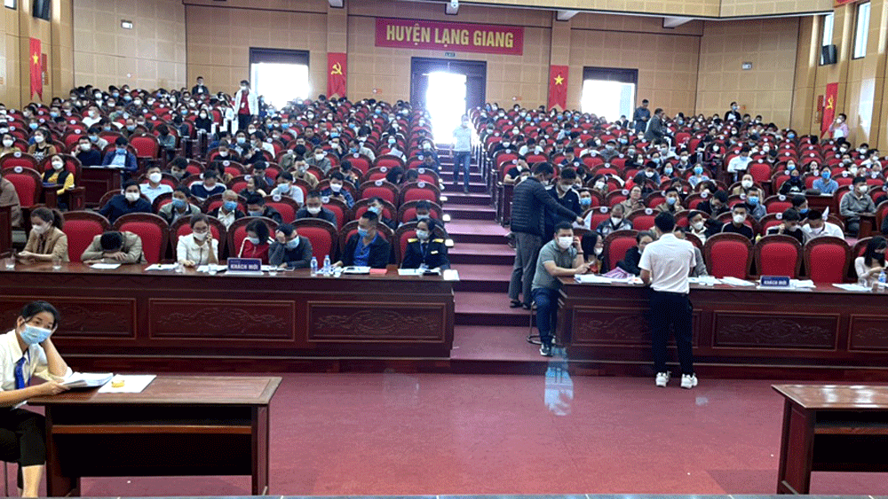 Phiên đấu giá tổ chức tại Khu nhà liên cơ UBND huyện Lạng Giang. (Ảnh DNTH)