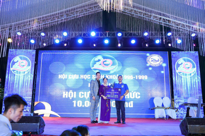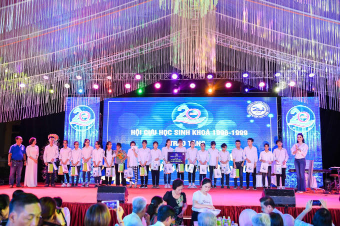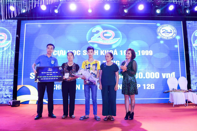 Anh Tô Thanh Tân, nhiếp ảnh gia nổi tiếng luôn đồng hành với các người đẹp hoa hậu và cũng là cựu học sinh lớp 12E chia sẻ thêm, hội khóa lần này, khóa đã trao tặng cuốn sổ tiết kiệm 60 triệu đồng tới con của chị Kim Anh lớp G - người bạn đã mất vì ung thư, hoàn cảnh gia đình khó khăn. Riêng anh Tân trao cho cháu bé học bổng 20 triệu đồng để đóng học phí trong 4 năm tới.