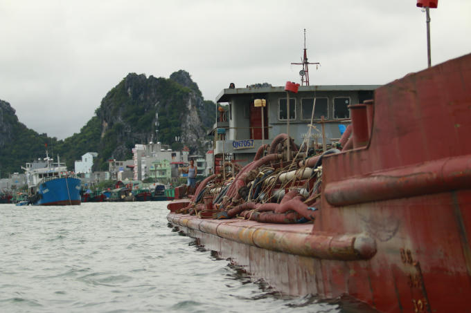 Phương tiện khai thác cát trái phép bị bắt giữ mang số hiệu QN 7057, hiện đang bị Công an huyện Vân Đồn neo giữ tại Cảng Cái Rồng chờ xử lý.