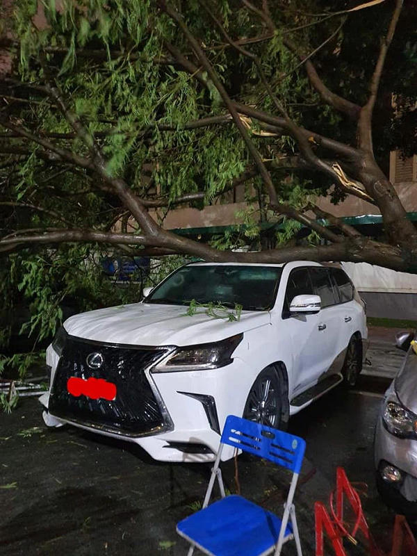 Hy hữu màn đỡ cây đổ đầy xót xa trong đêm mưa lớn tại Hà Nội: Lexus LX 570 giá chục tỷ bẹp rúm nóc xe
